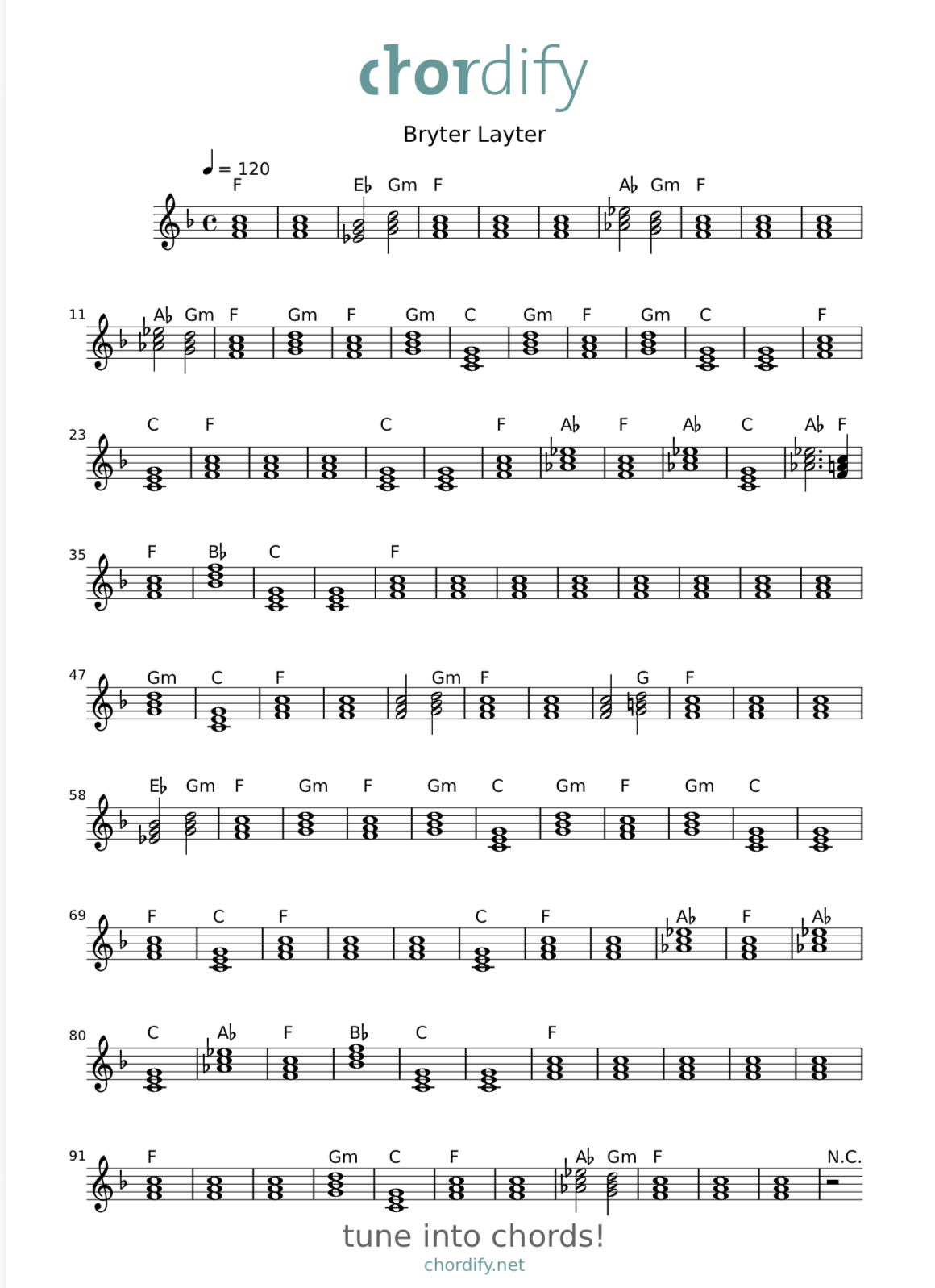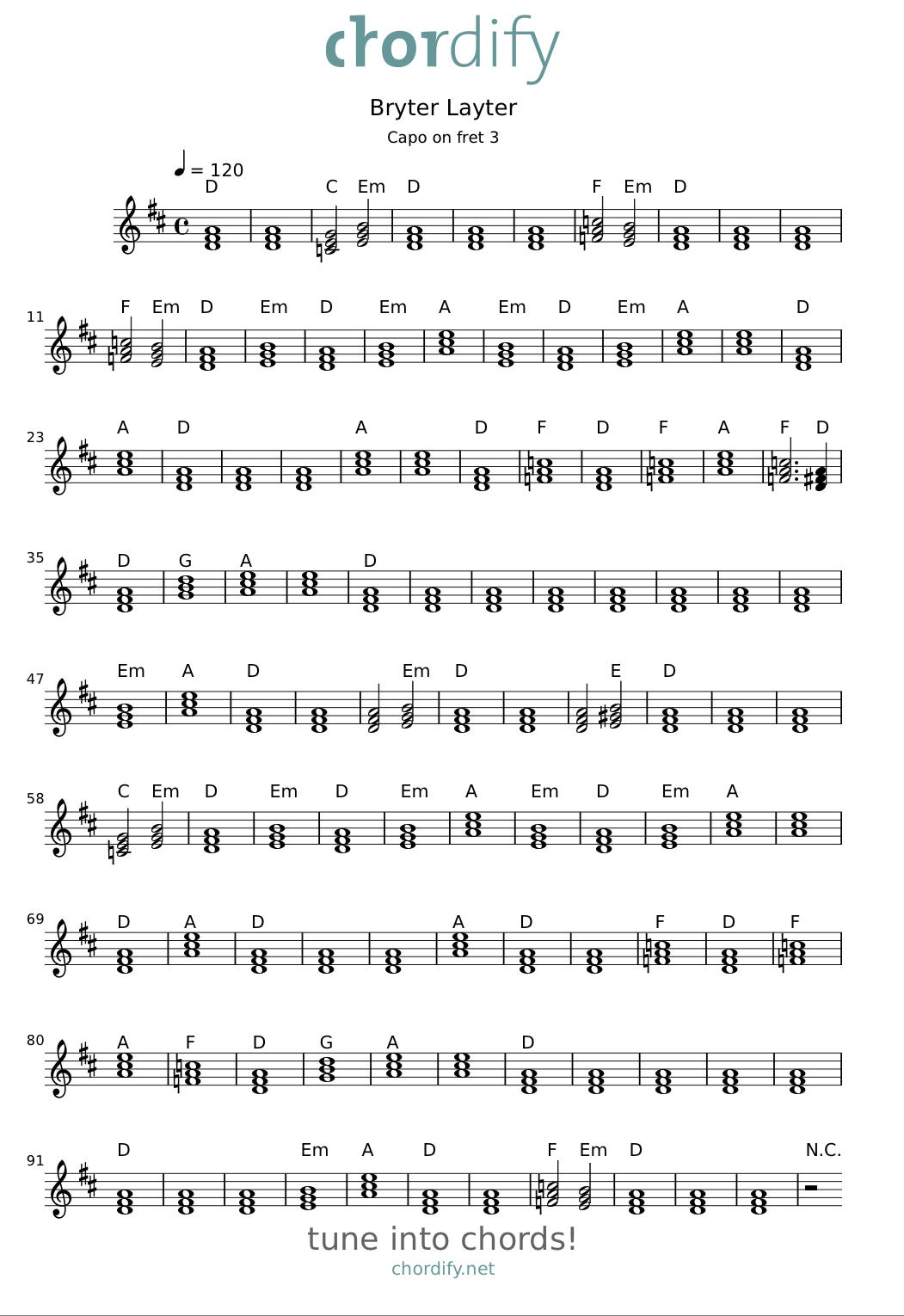 From Chordify Link: Bryter Layter